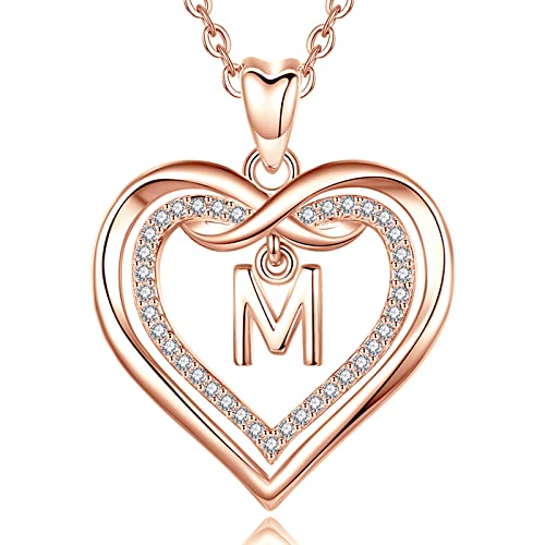 AEONSLOVE initial halsband för kvinnor, hjärta bokstav hänge halsband med kubisk zirkonia, personligt alfabetshalsband i kopparpläterad med roséguld, 50 cm kedja, Koppar Kubisk zirkon, Kubisk zirkonia
