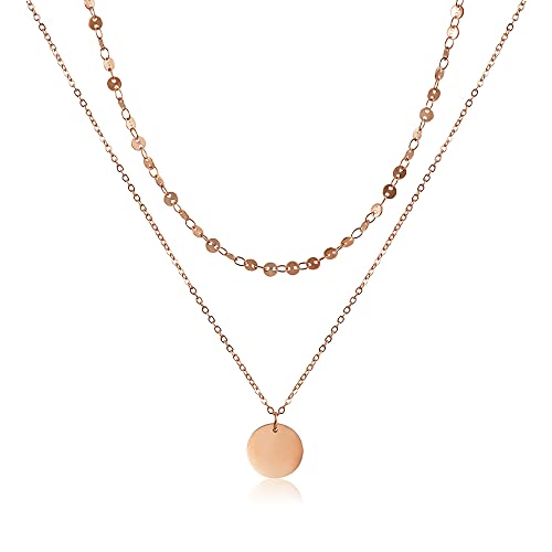 Kedja med flera rader för damer med blodplättar - vattentätt mynthalsband med dubbla rader i guld, silver eller roséguld I Skiktad kedja med blodplättar i rostfritt stål (Roséguld)