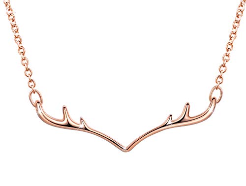 Oändligt U hjorthorn horn kvinnor flickor halsband 925 sterlingsilver hänge justerbar kedja med hänge, roséguld