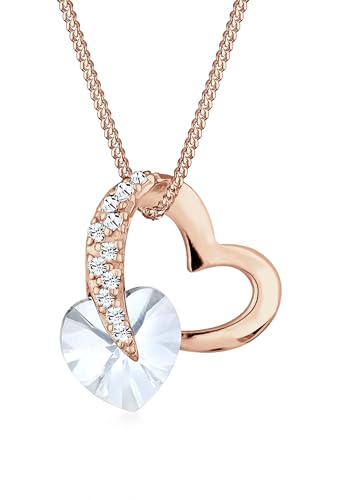 Elli kvinnors 925 sterling silver roséguld pläterade kristaller hjärta vinge kärlek hänge med kedja, 450, Fasettsnitt, Kristall