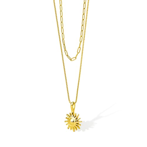 VICKWOOD Kedja-solhalsband damer lager kedja 50–60 cm långt smycke med solhänge i rostfritt stål vattentät i 16k förgyllning/roséguld/svart/silver med presentförpackning, Rostfritt stål