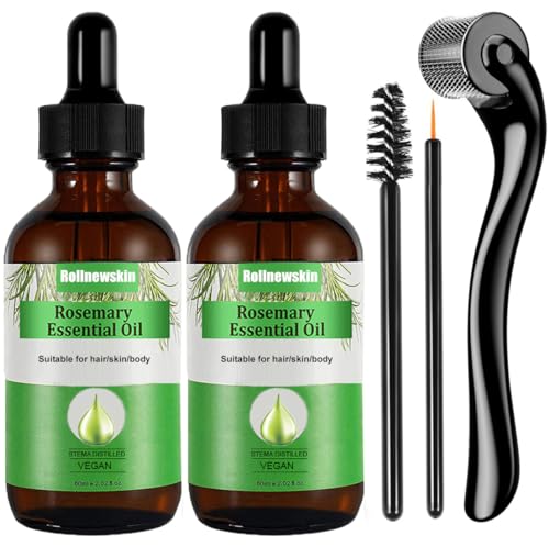 Rollnewskin 2Pack Rosemary Essential Oil (60ML) + Derma Roller 0,5mm för hår, ögonbryn och ögonfransar, hudvård, för aromaterapi och diffusor