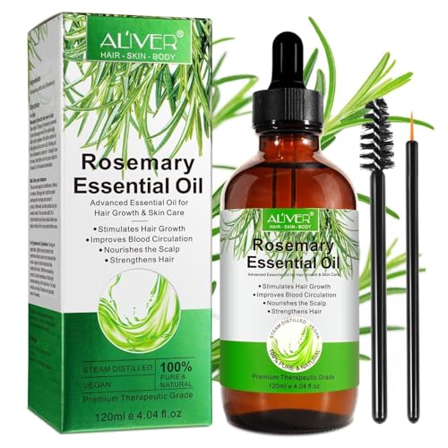 ALIVER Rosmarinolja för hår och hårbotten, Rosemary Oil for Hair, stimulerar hårväxt och hårolja mot håravfall, 100% naturlig rosmarinolja för hudvård, aromaterapi, 60ml