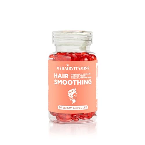 Myhairvitamins Hårolja/Hårserum för Torrt/Frissigt/Skadat hår med Keratin, Rosemary, Topiska Vitaminer A, B, C, E & Amino Syror Hjälper Mot Håravfall med Värmeskydd | 30 Hair oil capsules