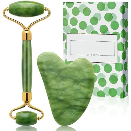 Gua Sha jade roller ansikte guasha sten rosenkvarts ansiktsrulle skrapa massageapparat verktyg för öga hals ansikte anti-åldrande ansiktsmassageapparat jaderrulle presentset (grön)
