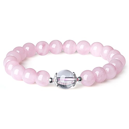 Domicubes armband damer, rosenkvarts armband ädelsten armband tonåring flickor gåvor moster gåva stretch pärlor armband för dotter systrar flickvän fru mormor, Eine Grösse, Sten, Agat