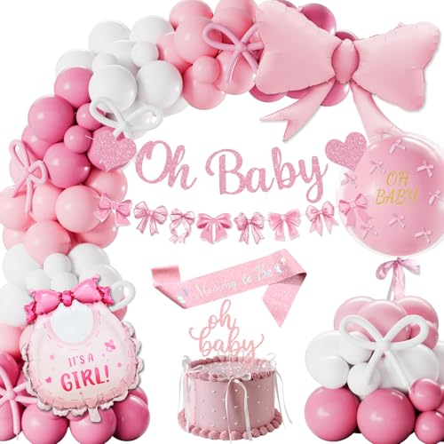 Baby shower dekorationer flickor, baby shower ballonger rosa och vit, rosa rosett tema banderoll Åh baby, rosett ballonger, mamma att vara band, kön avslöja festdekorationer, välkommen