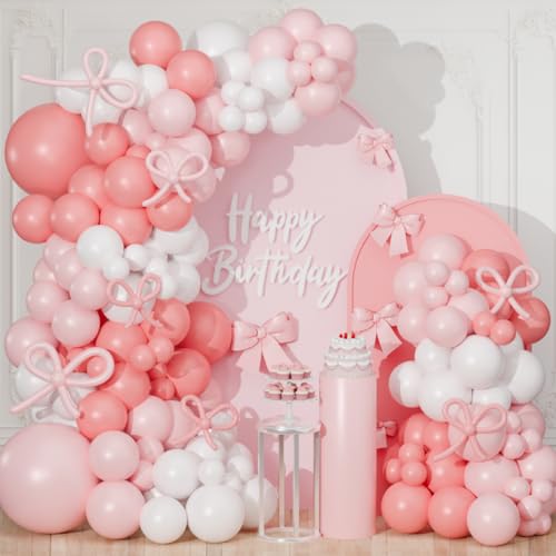 Rosettballongbåge-kit, 130 st babyrosa och vita ballonger båge med ljus persika vit latex heliumballong, rosett prinsessballonger för baby shower flickor födelsedagsfest dekorationer bröllop