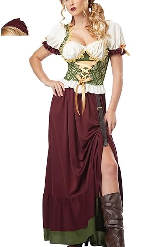 LIUYUYOUGO Bayern Dirndl-klänningar dam, Dirndl dam midi vintage kostym set traditionella teaterklänningar inklusive Dirndlblus Dirndl förkläde rosett, klänning med huvudduk, M