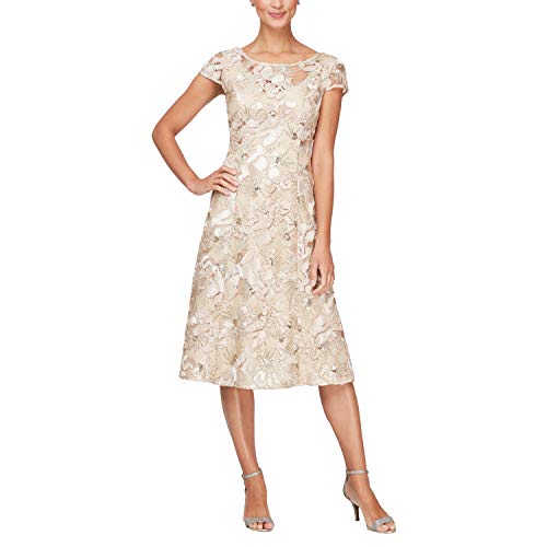 Alex Evenings Kvinnors te-längd A-linjeformad rosett klänning med mössa ärmar speciellt tillfälle