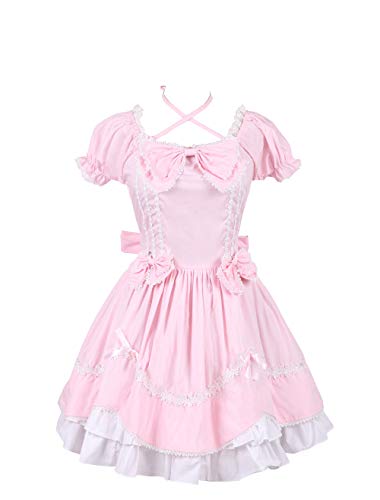 Antaina rosa bomull spets rosett volang söt retro viktoriansk lolita cosplay klänning