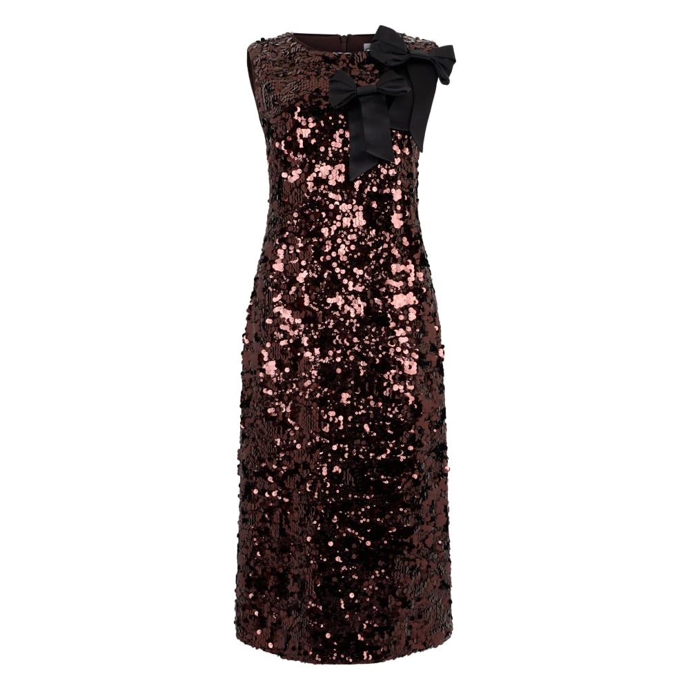 Ganni, Klänningar , Dam, XS, Paljetter, Midi Klänning Med Paljetter och Rosett