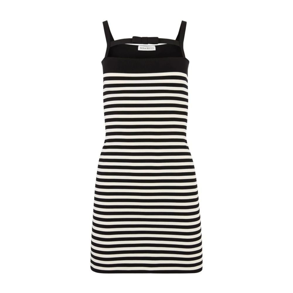 Nina Ricci, Klänningar , Dam, M, Randig Ärmlös Klänning med Rosett