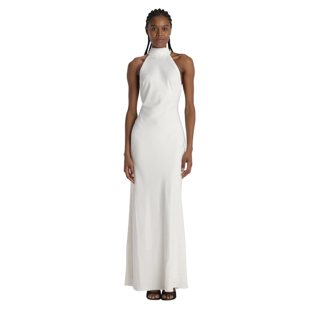 Misha, Klänningar , Dam, M, Polyester, Lång Klänning med Rosett i Ryggen