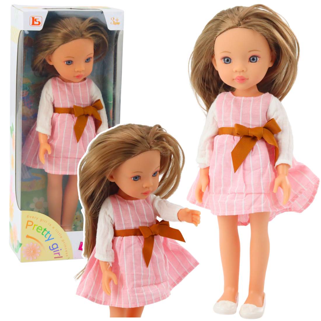 Docka med klänning, rosett, långt hår, rosa kam, 38cm