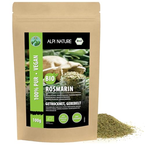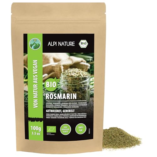 Ekologisk rosmarin torkad (100 g), från kontrollerad ekologisk odling, glutenfri, laktosfri, laboratorietestad, vegansk, 100% naturligt ren utan tillsatser, för kryddblandningar och rosmarin te