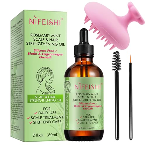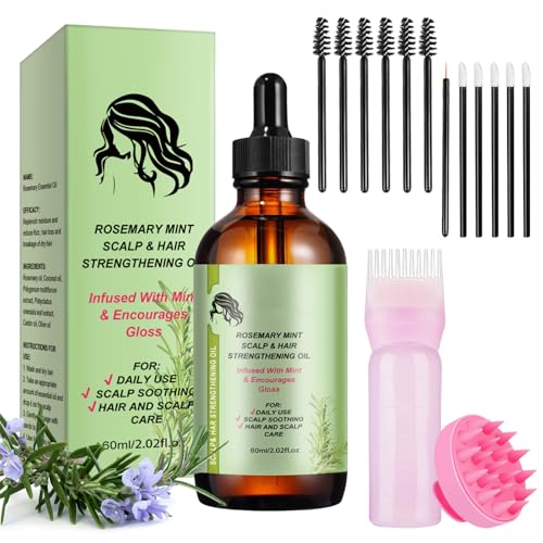 Rosmarinolja för hår, med hårmassageredskap, eterisk rosmarinolja för torrt och skadat hår, stimulerar hårväxt, vårdar hårbotten, 60 ml
