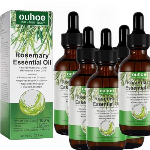 Lecerrot 5 st rosmarinolja för hårväxt och hudvård - 100 ren eterisk ekologisk rosmarinolja, ger näring åt hårbotten och förbättrar hårtillväxt, hudvårdsolja för aromaterapi, massage och diffusorer