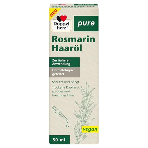 Dubbelhjärta ren rosmarin hårolja – rosmarinolja, ricinolja och sötmandelolja – för vård av hårbotten och förebyggande av kluvna toppar – 50 ml