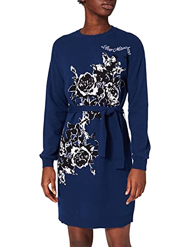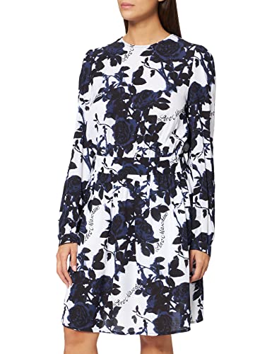 Love Moschino dam långärmad med inläggningar rosor från kollektionen allt-over motiv och midjebälte casual klänning, blå, 46 SE
