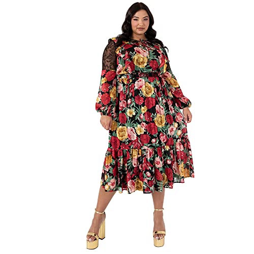 Lovedrobe Dam plusstorlek klänning dam midi aftonklänning rosor storlek 18, Blommor, 44 SE