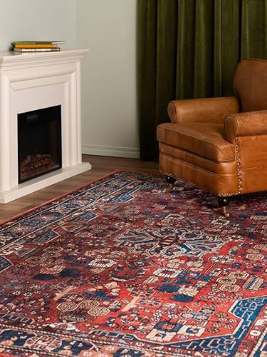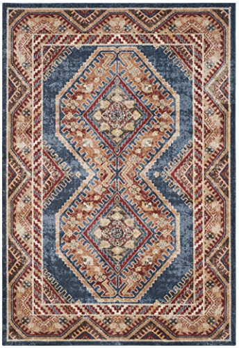 Safavieh traditionell matta optimal för högtrafikområden, maskintvättbar och halkbeständig, Tucson-kollektion, kort lugg, i rost och marinblå, 122 x 183 cm