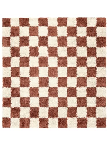 RugVista RugVista Chessie, Matta, 200 x 200 cm, Kvadratisk, Lång lugg, Vardagsrum, Sovrum, Endast kemtvätt, oeko_tex_100, Rost/Off Vit