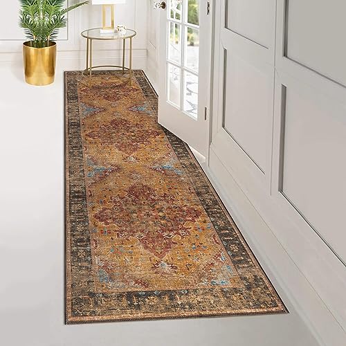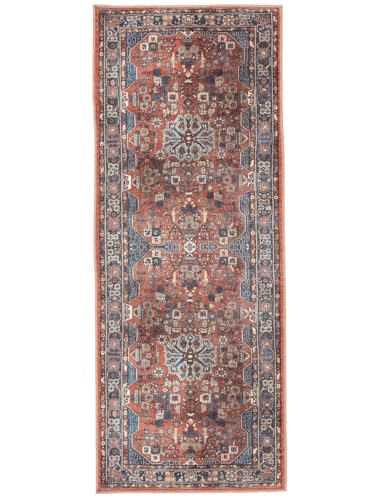 Vernal Milagros Maskintvättbar, fäller ej, halkfri matta för vardagsrum, sovrum, matsal, hall, kök, husdjursvänlig, ockra/valnötbrun/rost, 76 cm x 243 cm