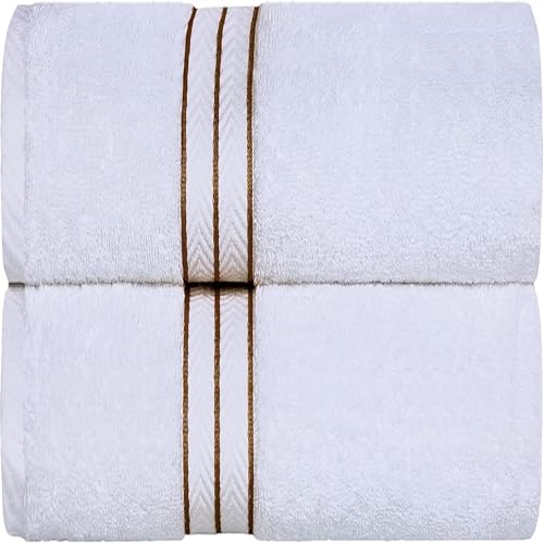 Superior Hotellsamling 900 gram, 100% premium långhäftad kammad bomull 2-delad badhandduksset, vit med rostad kant