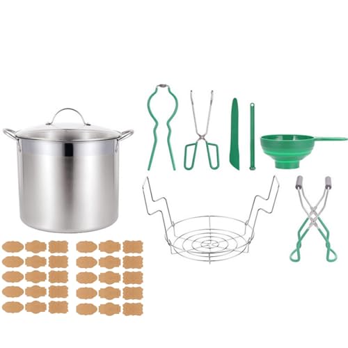 21,5QT Rostfritt stål vatten bad konservburk med hylla och lock, 9 st konserveringstillbehör startkit verktygsset, burk lyfttång, tillbehör till full konserveringssats, 30 st konserveringsetiketter