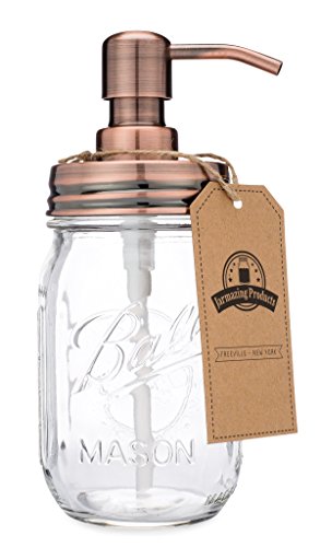 Jarmazing Products glasburk tvåldispenser – koppar – med 47 ml boll murare burk – tillverkad av rostfritt stål