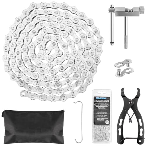 Muyohix Cykelkedja 9/18/27 växlar med cykelverktyg, 1/2 x 11/128 tum, 116 länkar, rostfri stål kedja set med kedjebrytare, cykeltång och 1 par kedjelås (Silver)