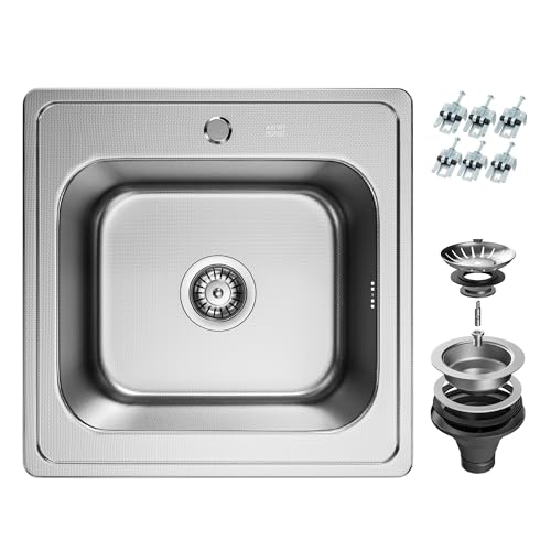 ANW HOME Köksbänk med sifon, rostfri köksbänk med kranhål, hörnrostfri bänk, inbyggd rostfri bänk, små köksbänkar, köksbänk (Mikro Decor - 48x48 cm)