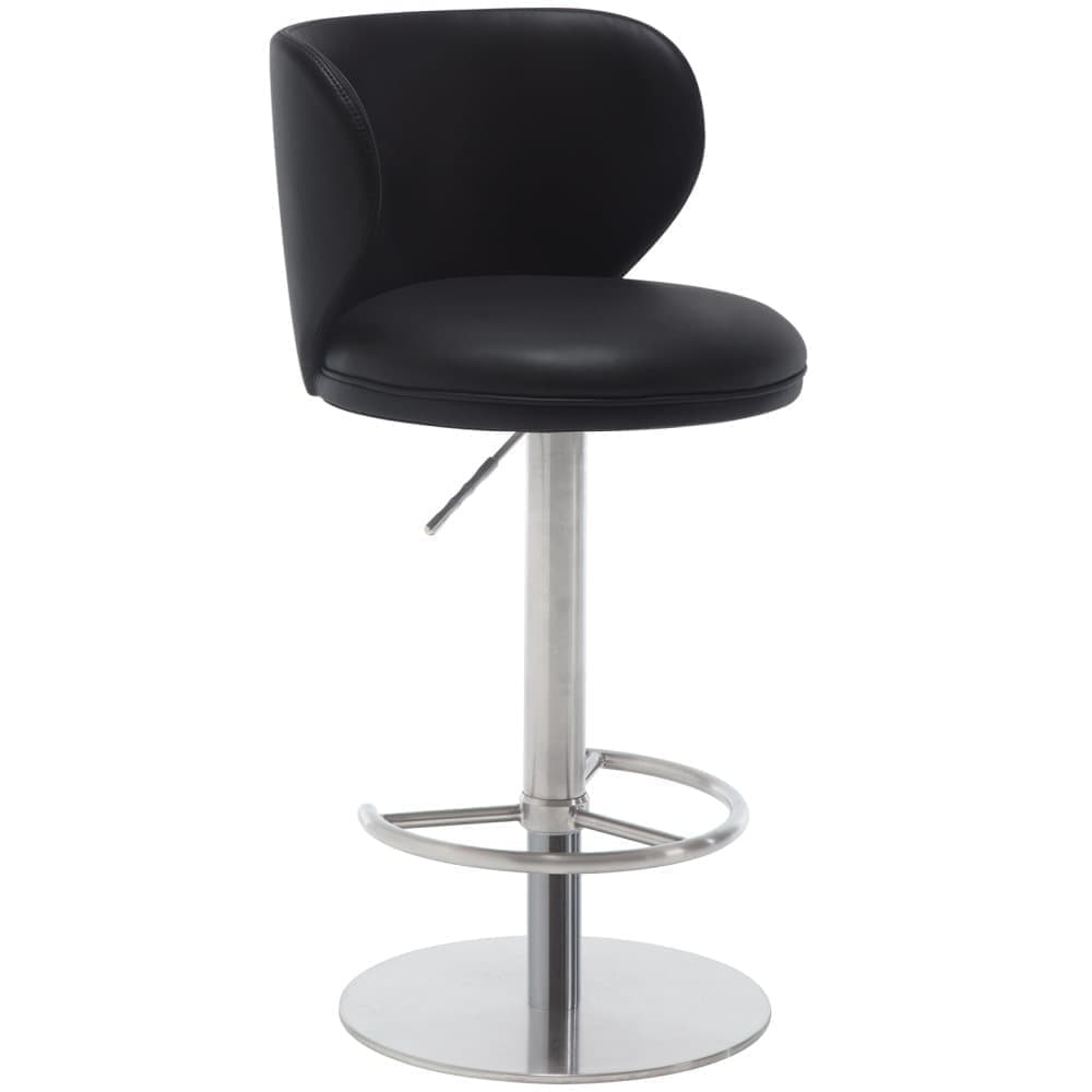 Svart titan rostfritt stål barstol, modern läderstol med ryggstöd, svängbar och höjdjusterbar för köksbänk och matrum
