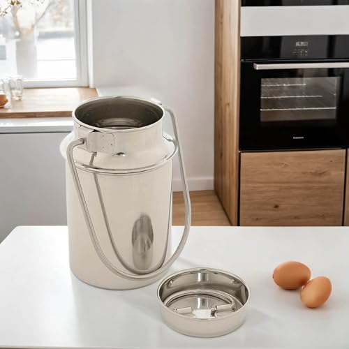 Mjölkkanna rostfritt stål 5l - mjölkkanna - för kaffe mjölk såser - 25,5 cm hög - med lock - handtag transportbehållare - dekoration - kaffekanna - vinbehållare