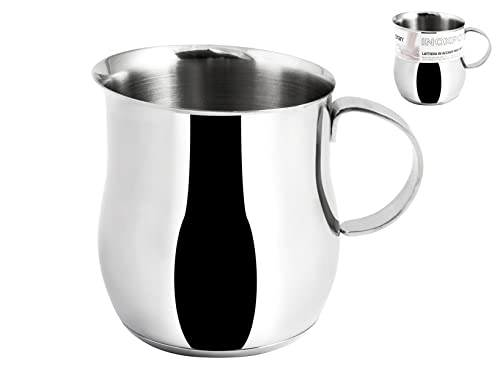 INOXPRAN INOXPOT Mjölk i rostfritt stål, kapacitet 400 ml, Klassisk och modern design, Idealisk för uppvärmning av mjölk och beredning av varma drycker, Mått 12x9x9 cm