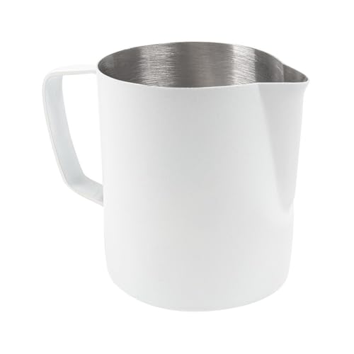 Normcore handtagslös mjölkkanna med vass pip – espresso ångkanna – 18/8 rostfritt stål mjölk skummande kanna – kaffe latte skumkanna – non-stick beläggning vit – 600 ml (20 oz)