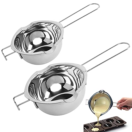 2 st dubbla pannor i rostfritt stål chokladsmältkanna med värmebeständigt handtag för uppvärmning av mjölk, smör eller choklad (400 ml+600 ml)