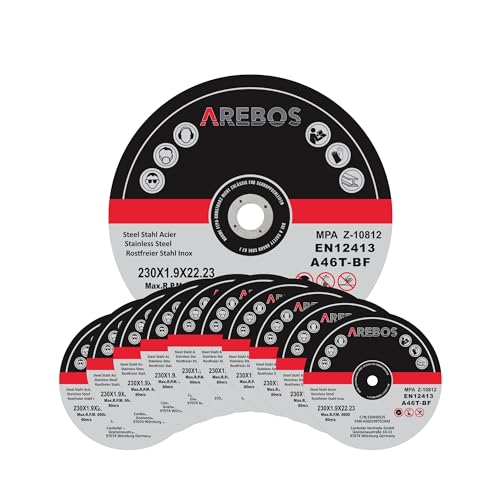 Arebos Skärskivor 100 stycken | Ø 115mm x 1mm x 22,2mm | lämplig för stål, rostfritt stål, rostfritt, rostfritt, järn, plåt, metall | framåt och bakåt | EN 12413 | (MPA) certifierad