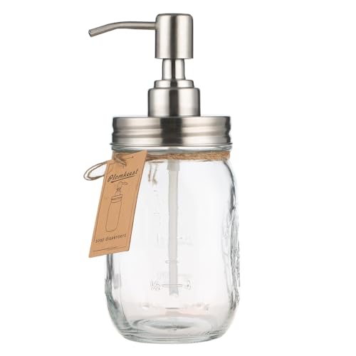 Plomkeest 473 ml glasburk tvåldispenser genomskinlig glasburk tvåldispenser med rostbeständig rostfritt stål pump flytande tvåldispenser för badrum, köksdekor perfekt för lotioner, flytande tvålar