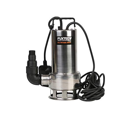 FUXTEC vattenpump FX-TP11100INOX smutsvattenpump dränkbar pump 1100 Watt, max. 15000 l/h, max. 11 m transporthöjd, främmande föremål upp till 35 mm, integrerad flottörställare