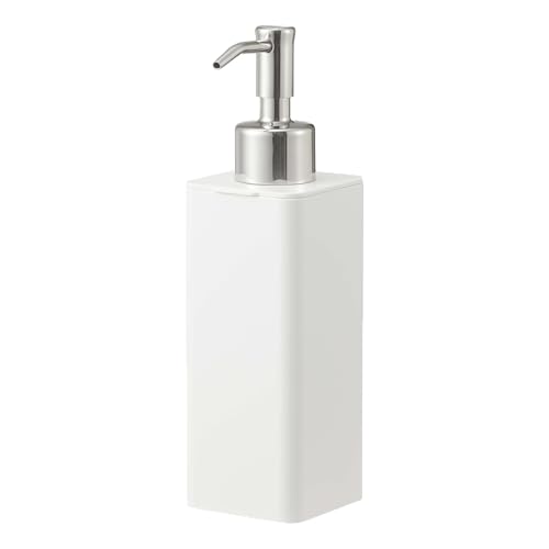 Yamazaki 5351 Tower självhäftande krok tvåldispenser, vit, tvåldispenser: ABS harts/silikon pump: Rostfritt stål/polyeten självhäftande krok: polykarbonat/PET/silikon, minimalistisk design