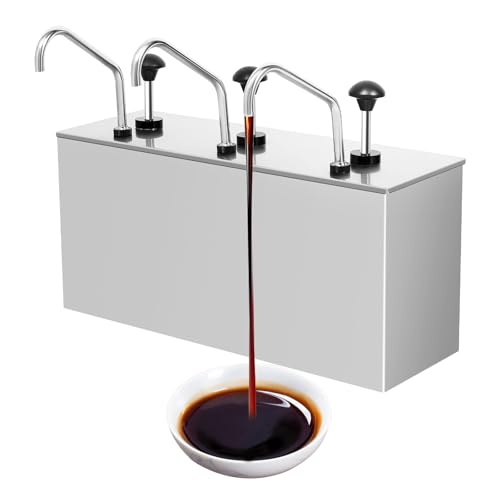 JAYEUW rostfritt stål såsdispenser pump såsdispenser doseringsdispenser för ketchup, salladsdressing, sojasås, vinäger 4L (3-huvud)