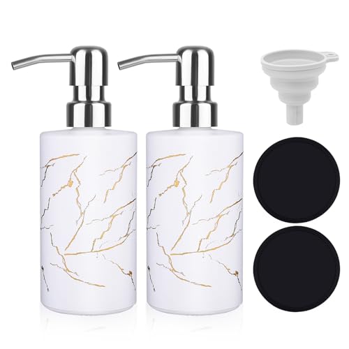 MOQAE Modern tvåldispenser av glas, 350 ml duschgel-dispenser med rostfri pump, lämplig för schampoflaskor för fyllning, inklusive underlägg och tratt, tvåldispenserset för kök och badrum