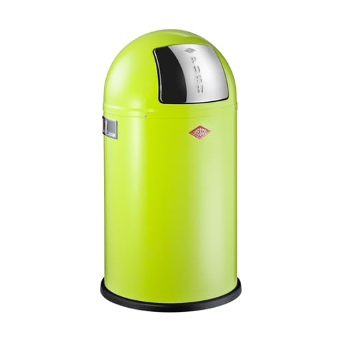 Wesco Pushboy junior papperskorg i limegrön, pulverlackerad stålplåt, 22 liter volym, stor klaff i rostfritt stål, avtagbar innerbehållare