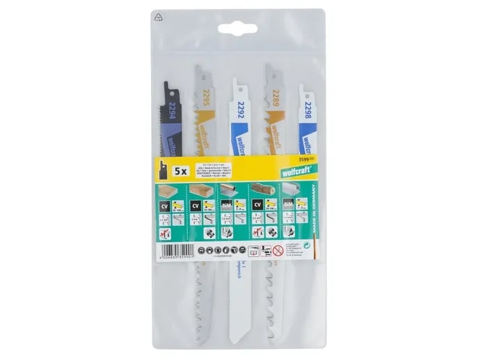 Wolfcraft Gmbh 3559000, Figursågblad, Spånskiva, Laminat, Mdf, Icke-Järnmetaller, Plast, Plywood, Mjuka Träslag, Rostfri Stålplåt (Tunn), Stål Med Hög Kolhalt (Hcs), 1,2 Mm, 4 Mm, 5 Cm