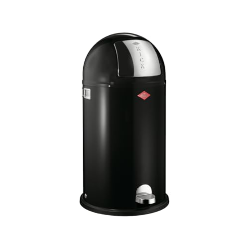 WESCO Kickboy Pedalavfallskorg i svart, pulverlackerad stålplåt, 40 liter volym, klaff av rostfritt stål, fotsteg i förkromad plast