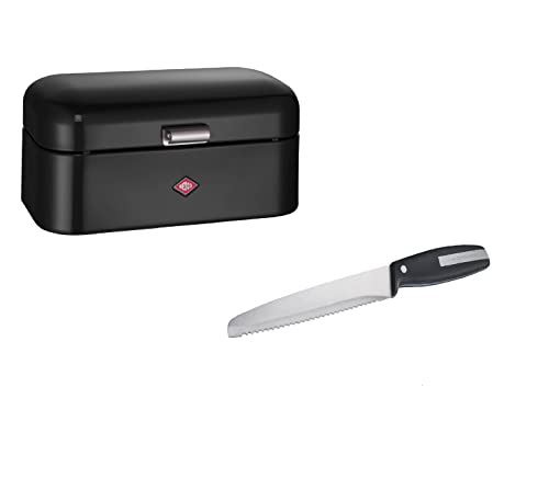 Wesco Set med 1 x Grandy brödlåda i svart av högkvalitativ stålplåt och 1 x brödkniv med blad av rostfritt stål i tandad kant