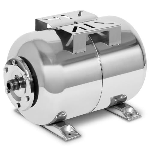 EBERTH Expansionskärl 24L, 6 bar, tryckkärl, tryckstegringssystem, tank, vattenlagringstank, 1" anslutning för hushållsvattenverk, brunnspump, rostfritt stål, horisontell, 0,8mm väggtjocklek