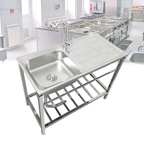 Fristående Diskbänk I Rostfritt Stål Enkel Skål Fristående Tvättho Med Kallt Varmvatten Rör Kran Förvaring Hyllor För Restaurang Kök Tvättstuga Garage